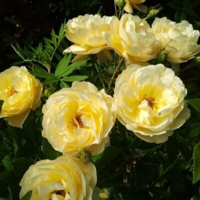 почвопокровные, шраб, желтая, h=0,5м, ширина около 1,2м, d=7-9см, аромат слабый (нежный), непрерывноцветущая, зона 5 (-29 до -23)